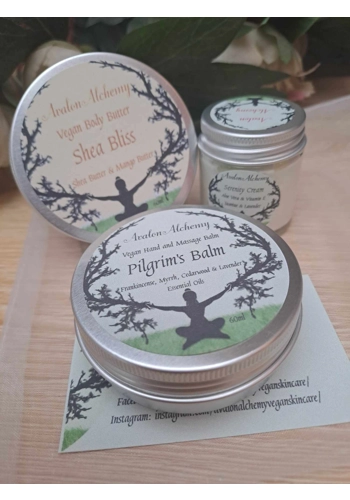 Pamper yourself or a loved one with our Pamper Gift Set containing our body butter; Shea Bliss, our facial moisturisers;  Serenity Cream, and our most popular hand and body balm: Pilgrim's Balm presented in a gift box.